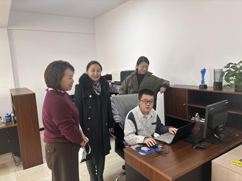 座谈结束后,在唐海岩总经理的陪同下,王植荔副教授和黄佳老师前往公司理赔部,实地考察了正在此处进行专业实习的2022经济与金融专业学生刘佳琪的工作情况。走访团队与刘佳琪同学及的实习指导老师进行了亲切交流,详细询问了的工作内容、实习收获、遇到的困难以及在企业的适应情况。
