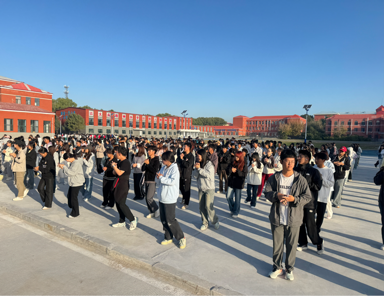 活动以“每日一新、高效融合、连续签到、安全第一”为原则,在西体育场、第五公寓门前小路分设专业场地,另以第五教学楼阶梯教室作为雨雪备用场地,保障活动“风雨无阻”。内容上兼顾文化与趣味:周一、二、五聚焦国家级非遗“八段锦”,周三、四开展团队跳绳、踢毽子等项目,在协作中提升运动活力;同时融入“时政学习”,构建“每周每日不同主题”的晨读机制——由班委轮值编撰涵盖国内要闻、行业动态的时政材料,经团总支审核后,以“齐诵+初步思考”形式呈现,实现“健体”“益智”同频。