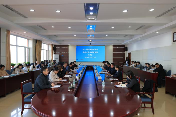 为深入贯彻党的二十届四中全会精神,聚焦大庆市高质量发展核心议题,11月12日下午,由大庆市社会科学界联合会主办,我校科研处、经济管理学院等单位联合承办的“进一步全面深化改革 推动大庆高质量发展”座谈会在主楼733会议室顺利召开。会议采用“线下+线上”结合模式,大庆师范学院教师代表现场参会,大庆市社会科学界联合会所属兄弟学会会员通过线上会议参会,会议由经济管理学院院长刘楠主持。